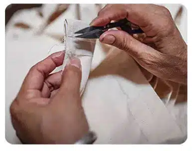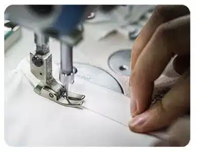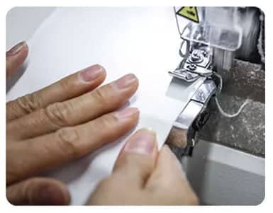 Seaming the production fabric that had been cut.